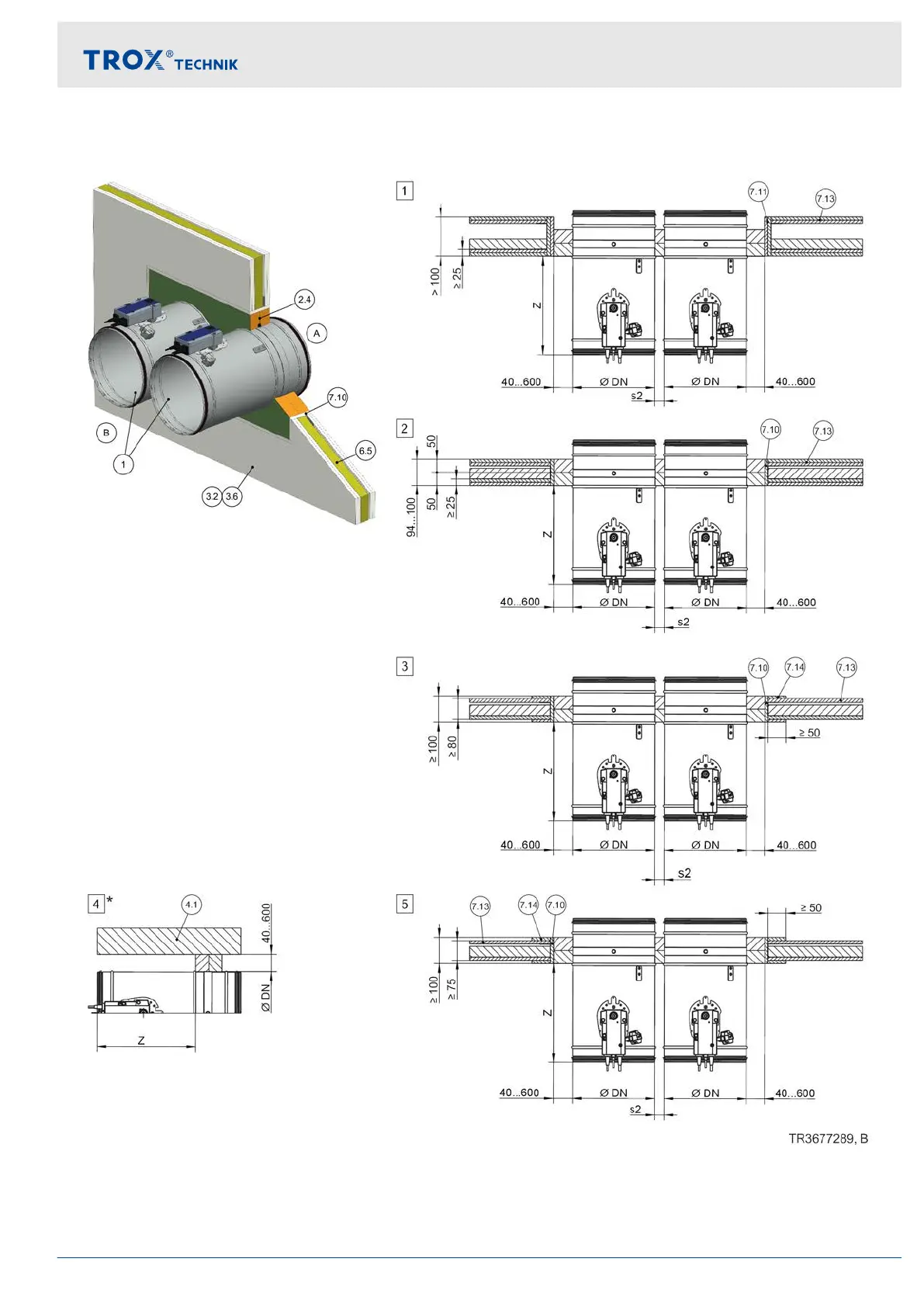 side by side installation (applies also to installation of dampers on top of each other)