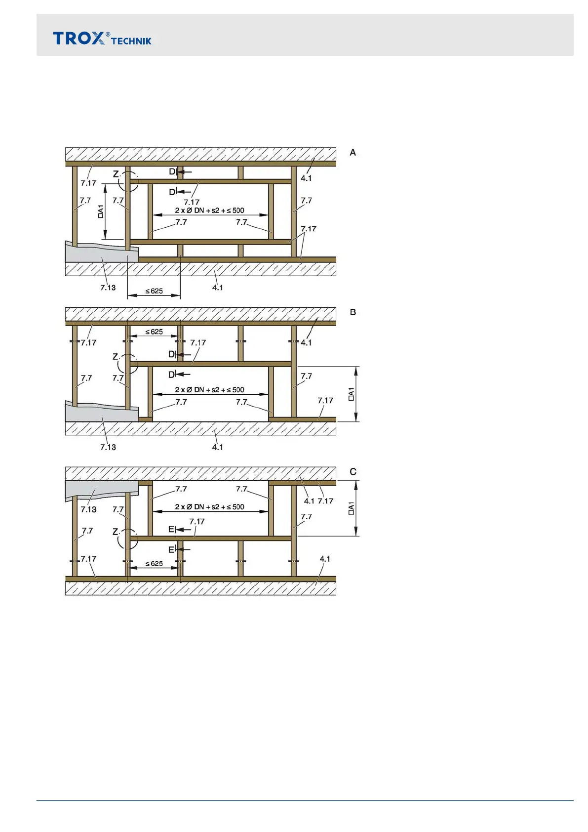 Fig. 50: Lightweight partition wall with timber support structure and cladding on both sides, flange to flange,