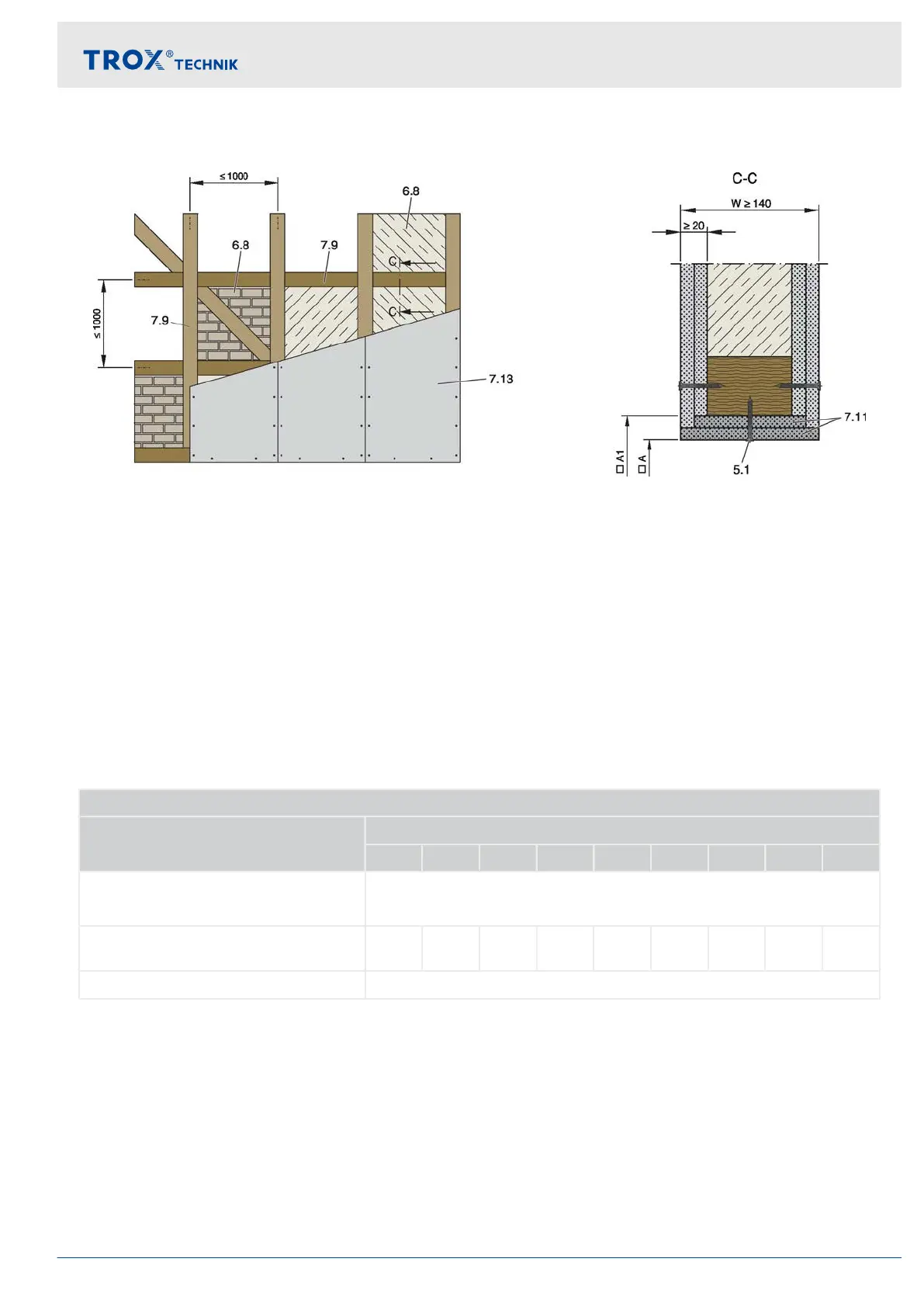 Dry mortarless installation with fire batt ☐A = Ænominal width + 80 – 1200 mm