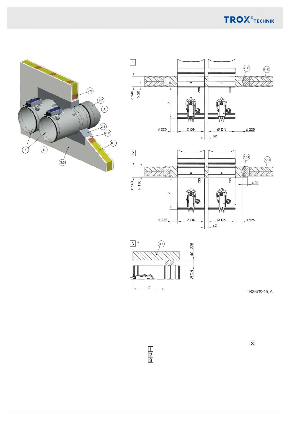 illustration shows side by side installation (applies also to installation of dampers on top of each other)