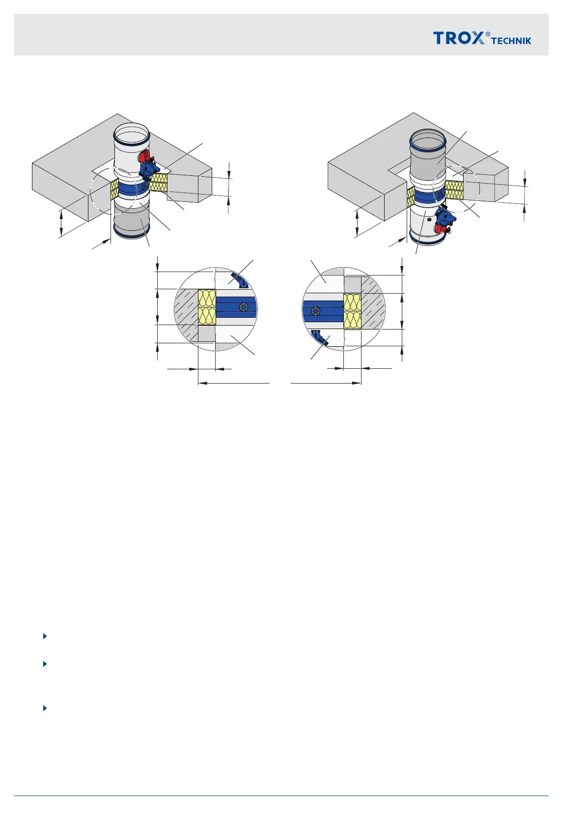 3. Extend the fire damper on the installation side with an extension piece (either attachment or supplied by