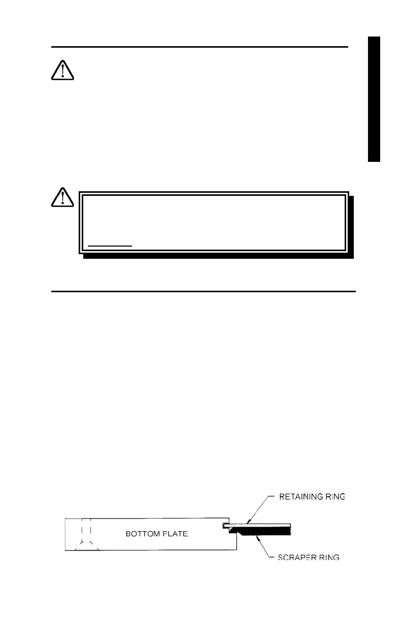 should be replaced. Replace the scraper ring by first removing the