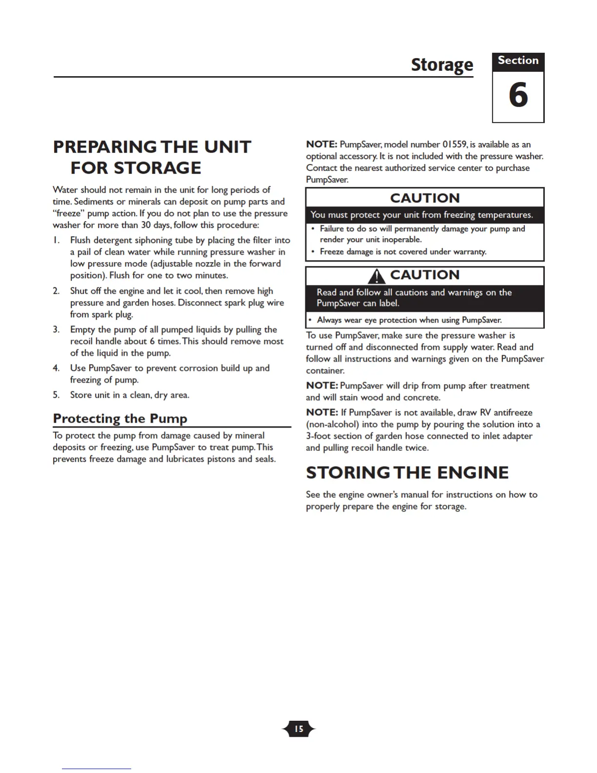 Troy-Bilt 01902 - Storage; Preparing Unit for Storage; Engine Storage Instructions