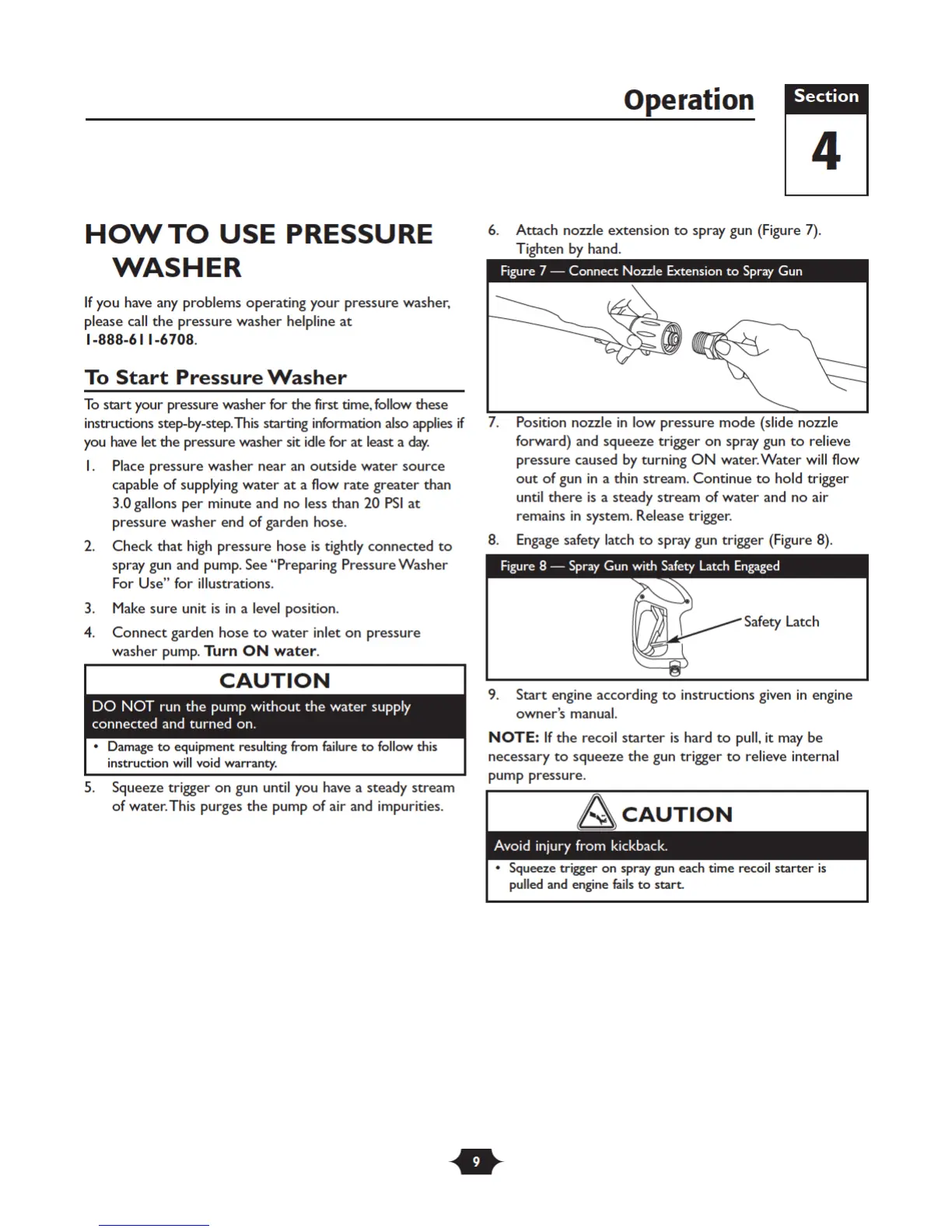 Troy-Bilt 01902 - Operation; How to Start Pressure Washer