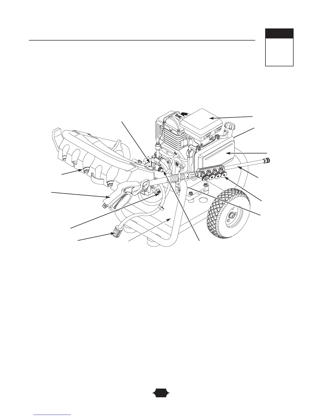 Compare the illustrations with your pressure washer to familiarize yourself with the locations of various controls and