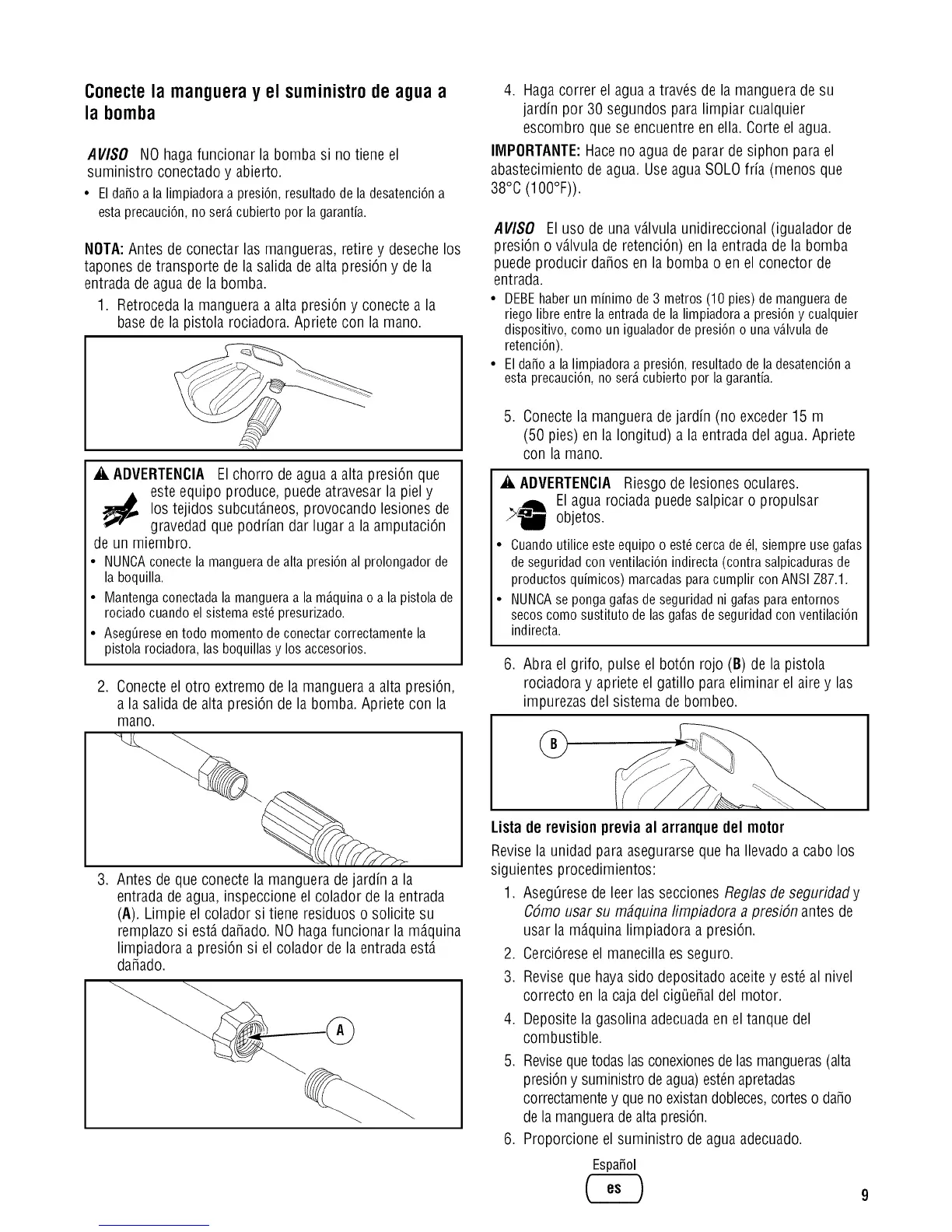 • Mantenga conectadala mangueraa la m_quina o a la pistola de