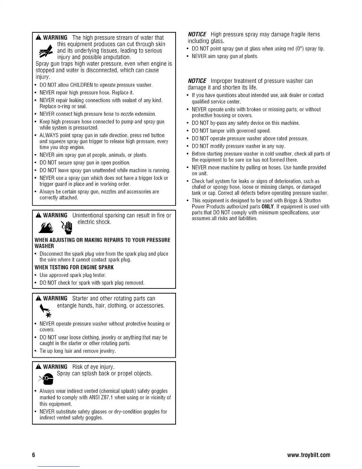 tank or cap. Correct all defectsbefore operating pressure washer.