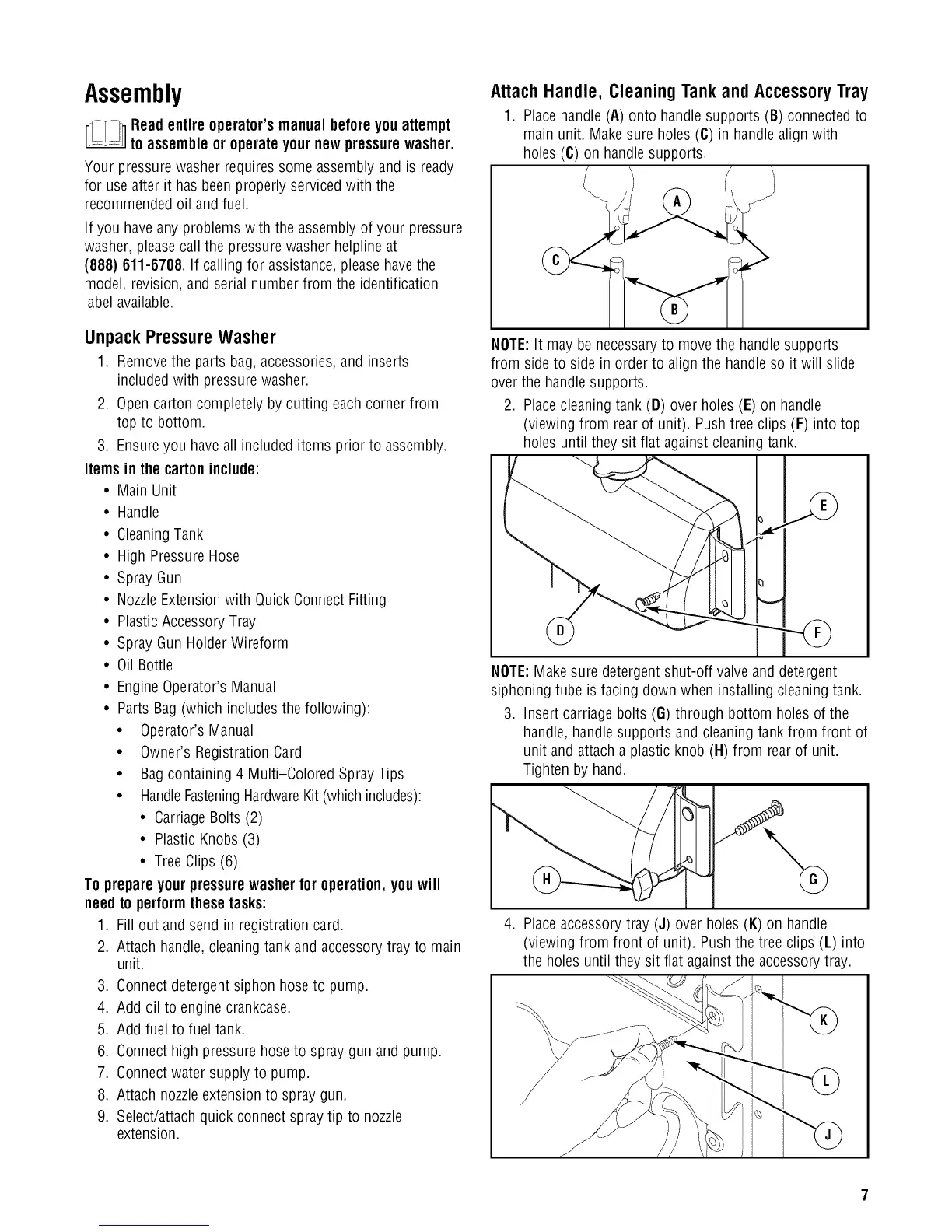 To prepare yourpressurewasherfor operation, youwill