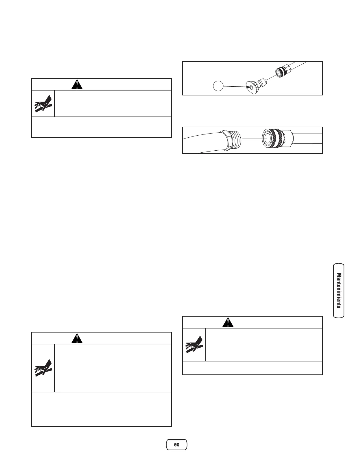 • NUNCA repare la manguera de alta presión. Remplacela.