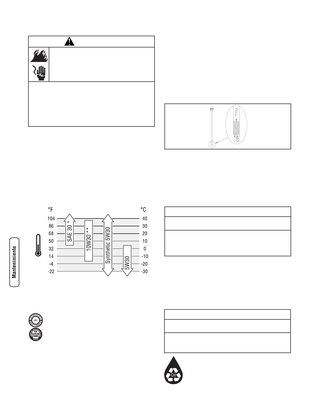 ** Por encima de 27 °C (80 °F) el uso de aceite 10W30 puede