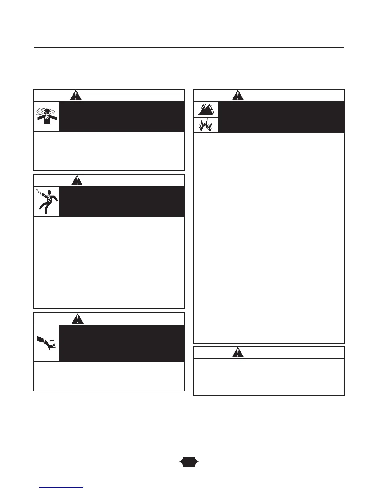 • Keep fuel away from sparks, open flames, pilot lights, heat, and