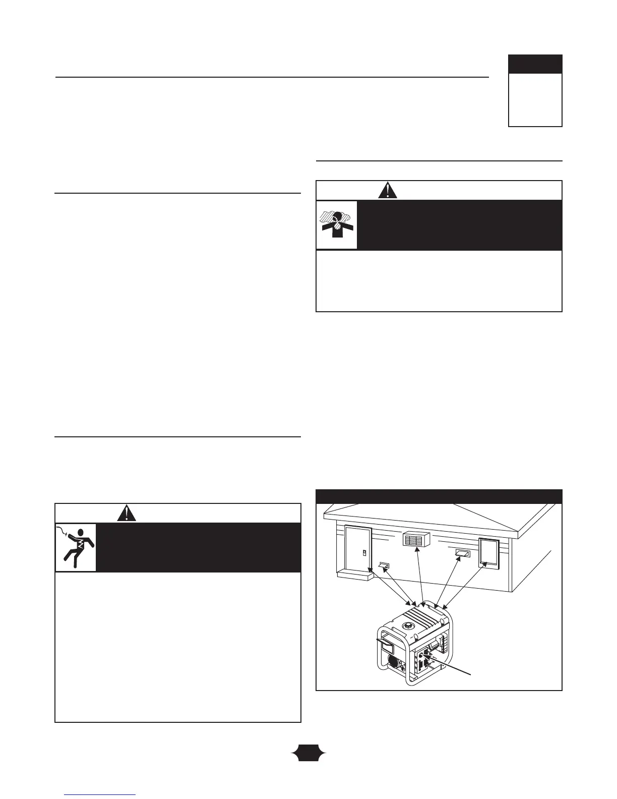 The generator must be at least 5 ft. (152 cm) from