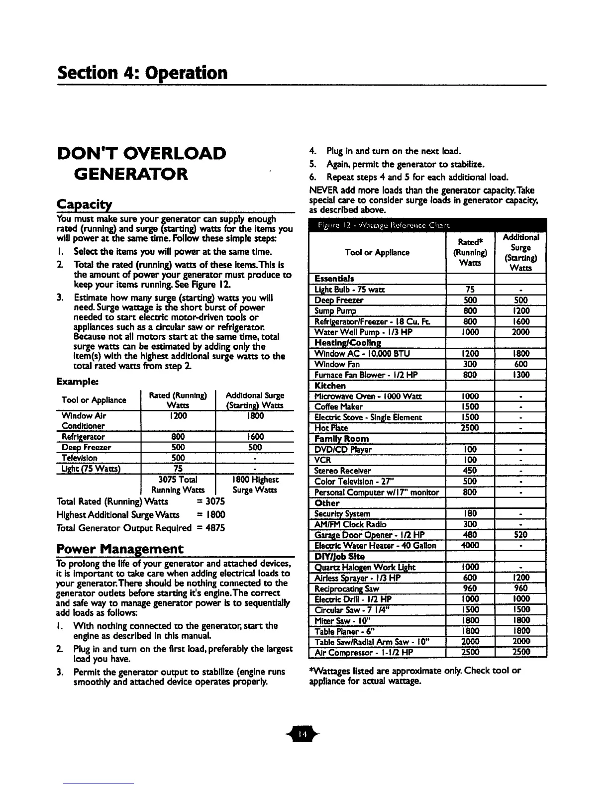 Troy-Bilt 030247 - Dont Overload Generator; Capacity; Power Management
