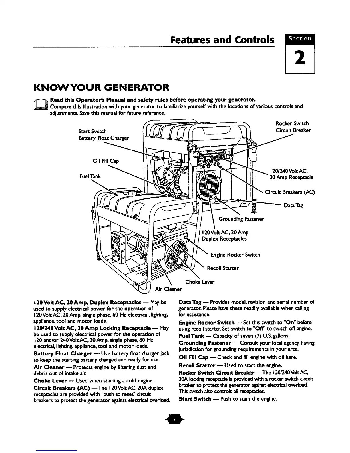 Troy-Bilt 030247 - Features and Controls; Know Your Generator