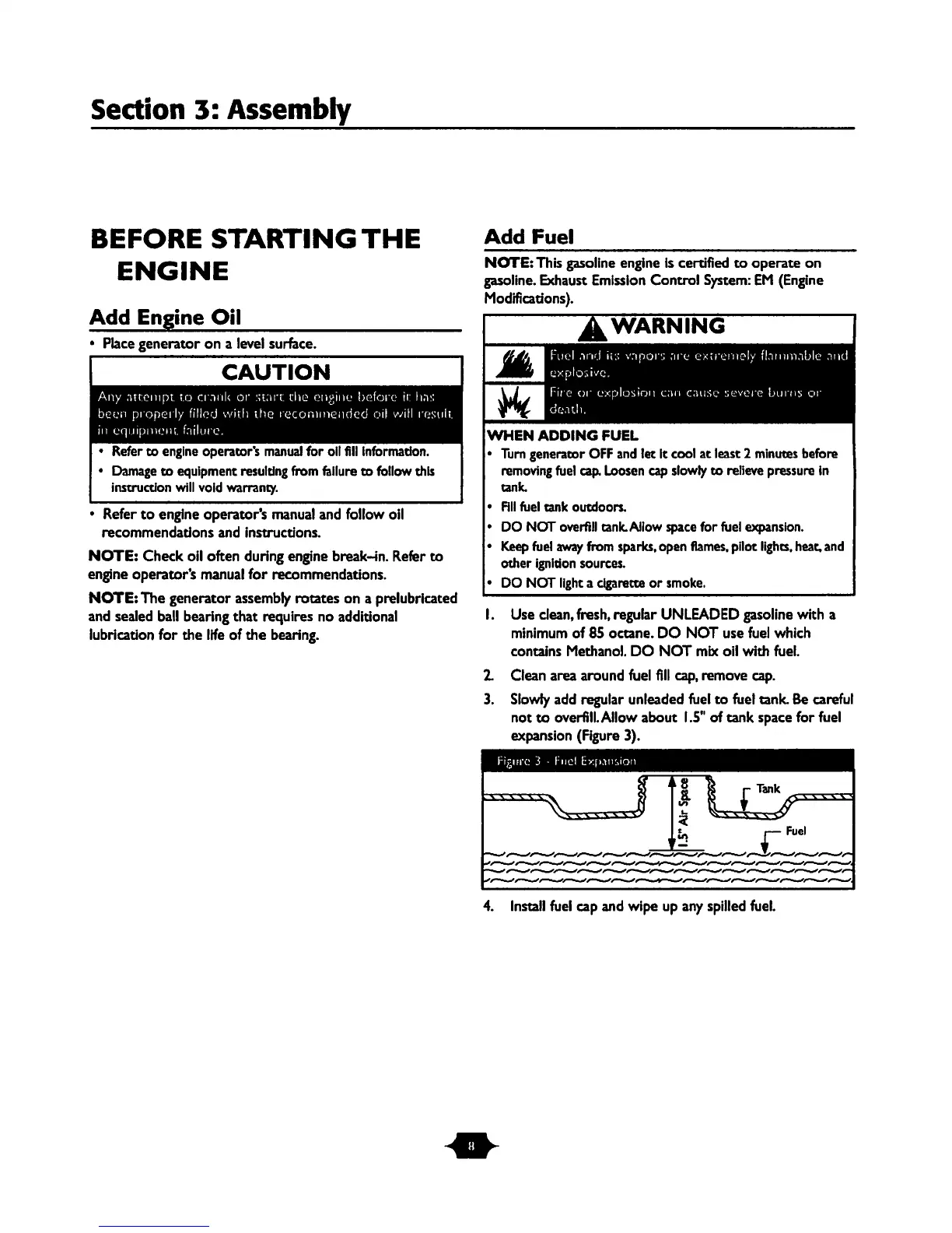 Troy-Bilt 030247 - Before Starting the Engine; Add Engine Oil; Add Fuel
