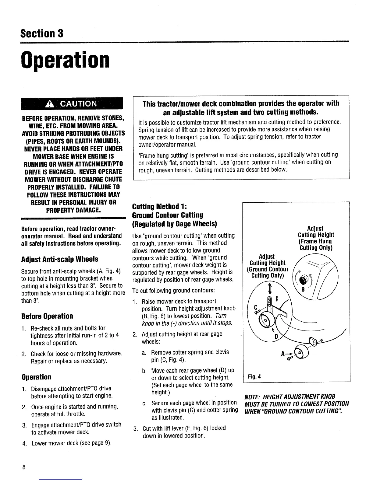Troy-Bilt 14049 - Operation; Adjust Anti-Scalp Wheels
