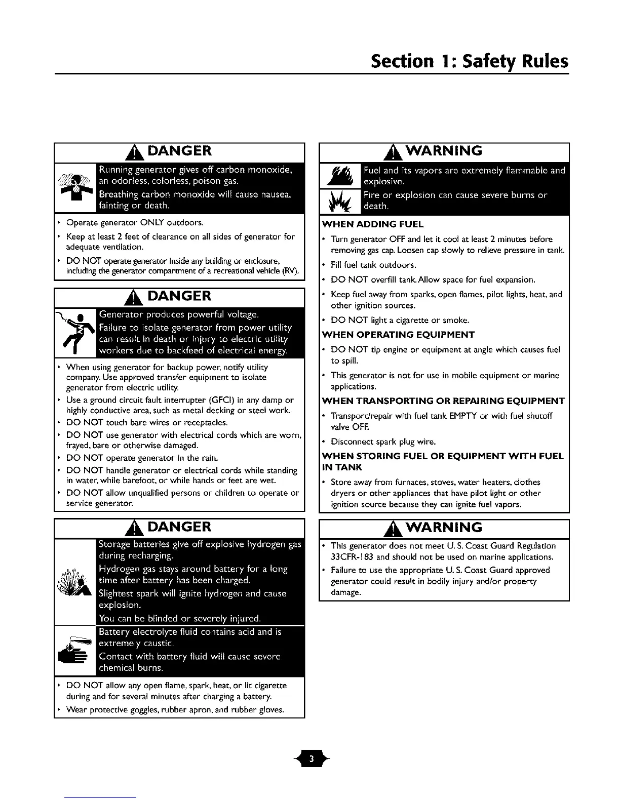 generator could result in bodily injury and/or property