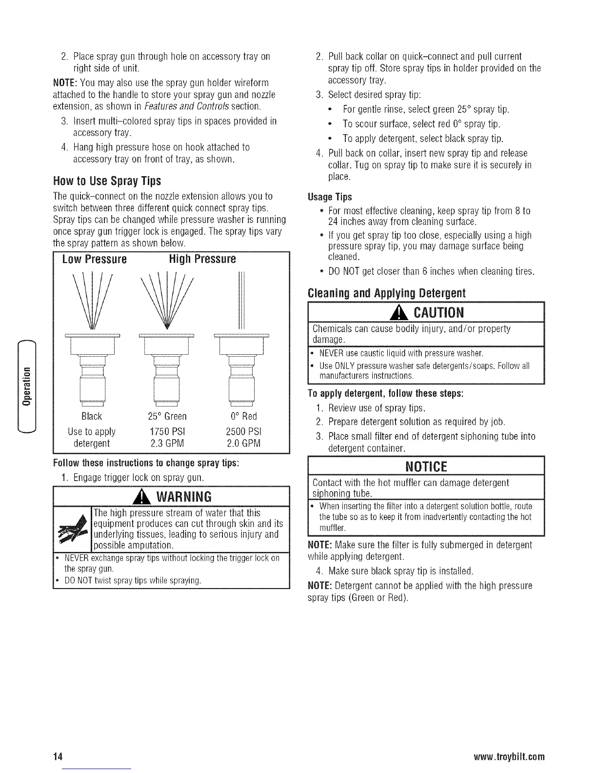 • For most effective cleaning, keepspray tip from 8 to