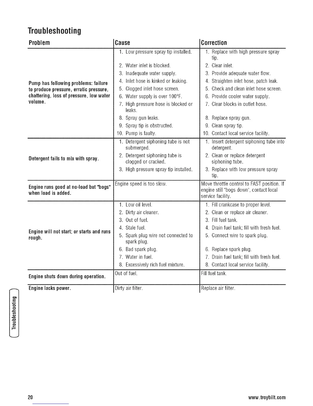 20 www.troybilt.com