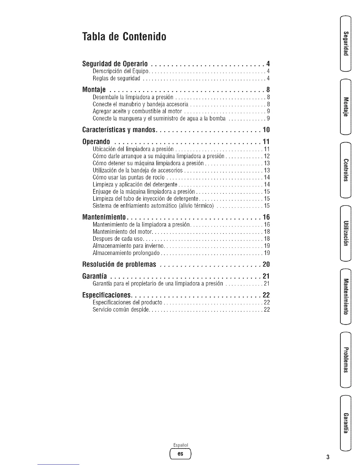 Garantiapara el propietario de una limpiadora a presi6n ............. 21