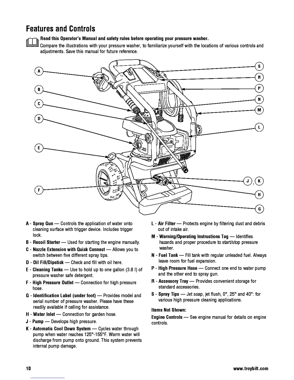 Troy-Bilt 20641 - Features and Controls