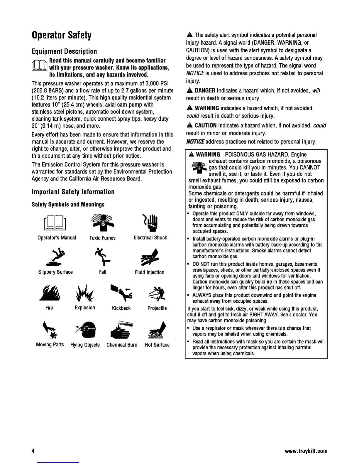 Troy-Bilt 20641 - Operator Safety; Important Safety Information