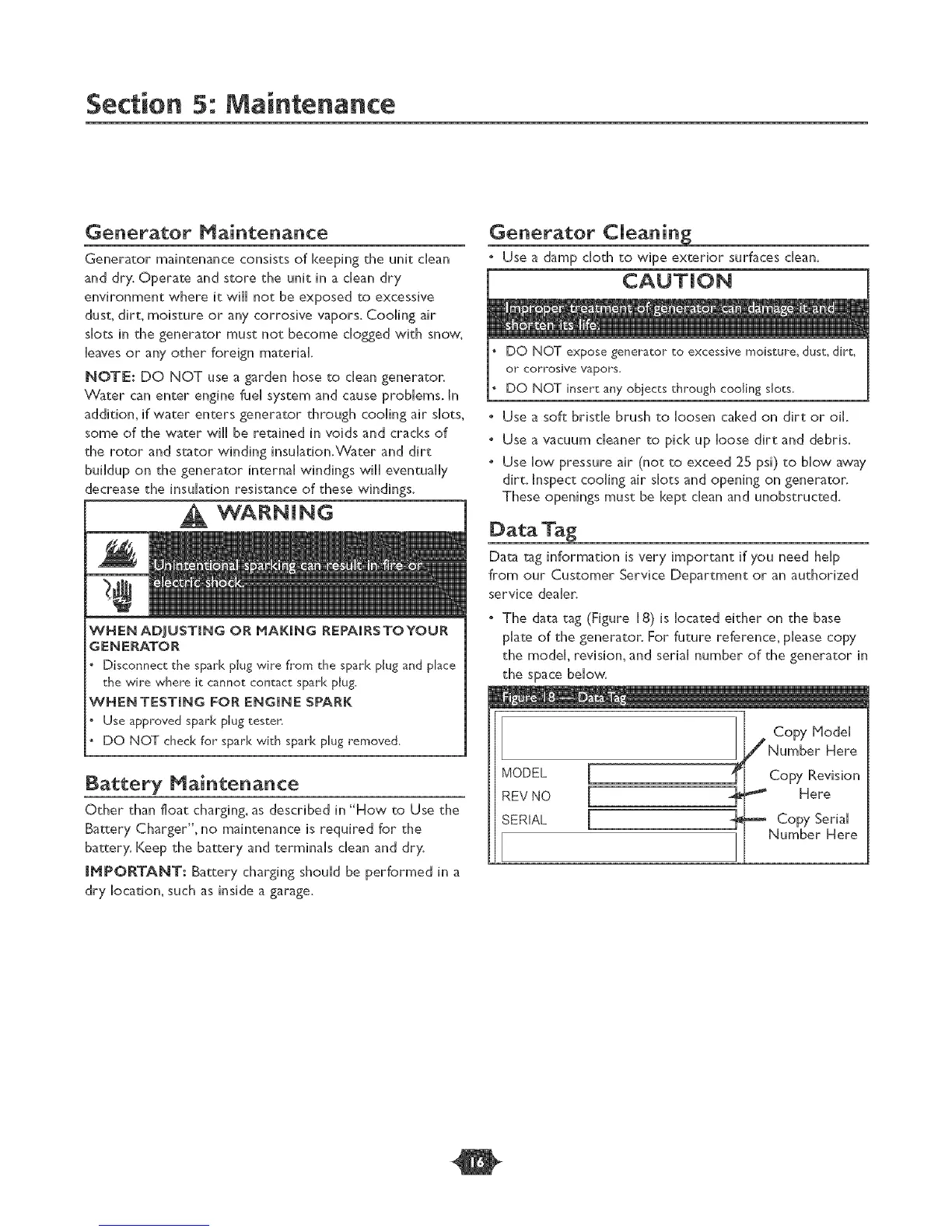 DO NOT expose generator" to excessive moisture, dust, dirt,