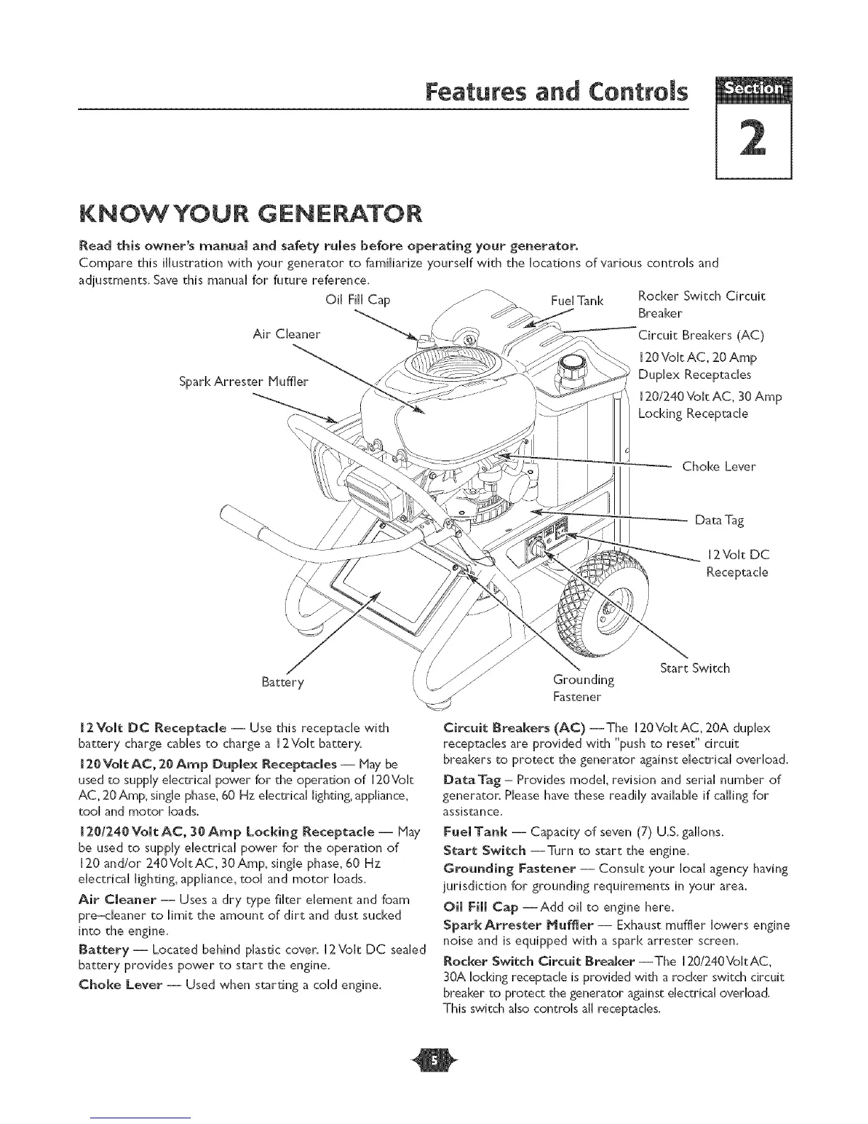 Compare this H[ustration with your generator to familiarize yourseff with the locations of various controls and