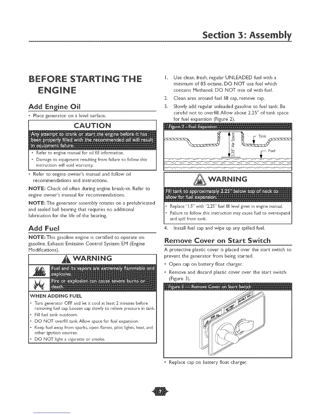 Turn generator OFF and let it cool at Ieast 2 minutes before