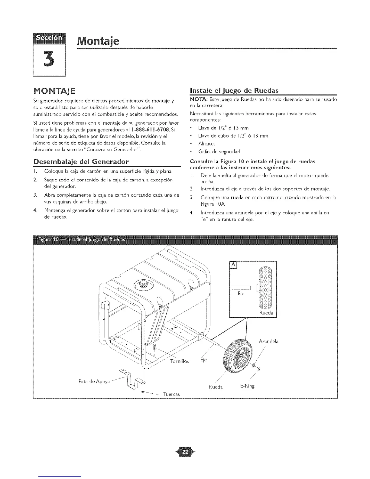 4. Mantenga el generador sobre el car_6n para instalar el iuego