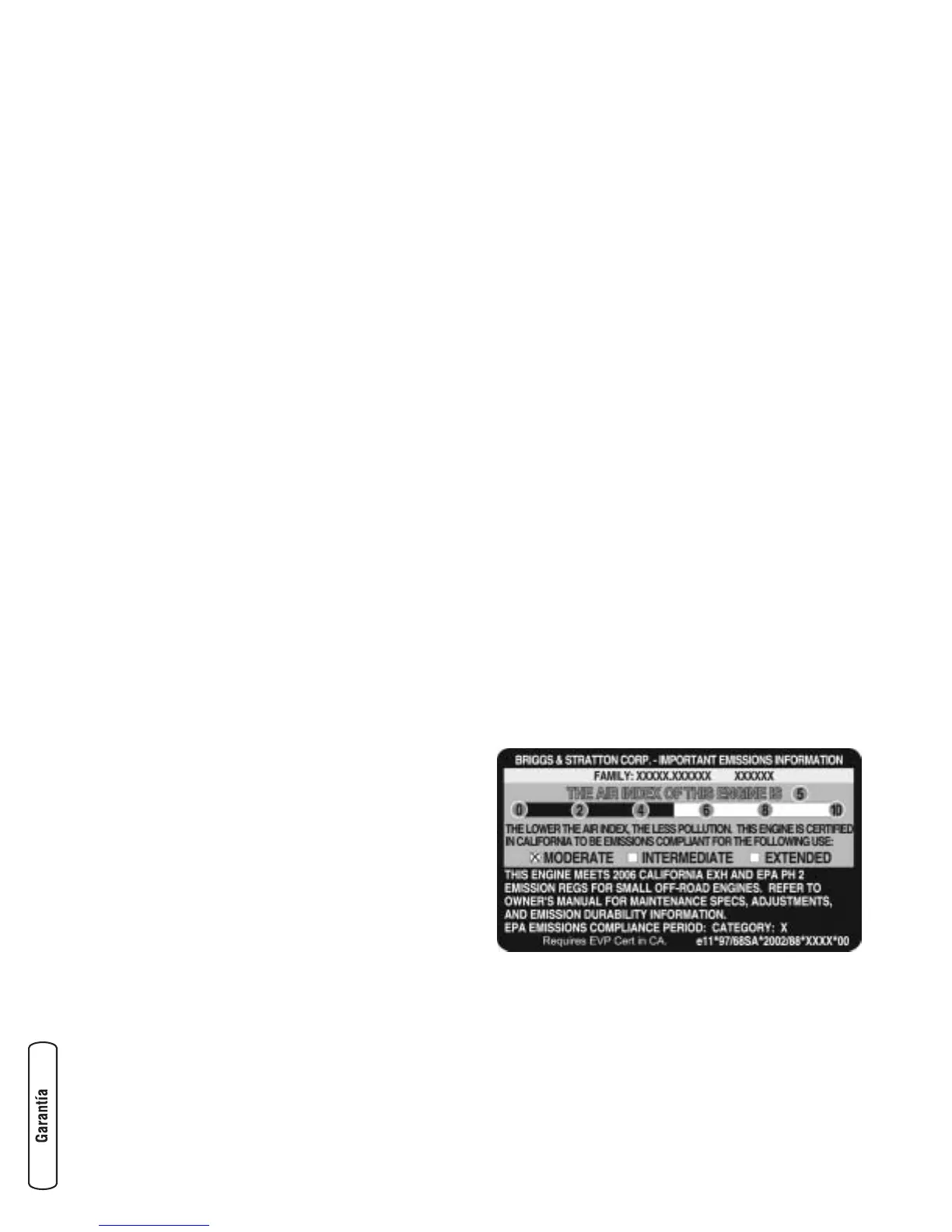 de las emisiones y el índice de aire. El fabricante del motor ofrece