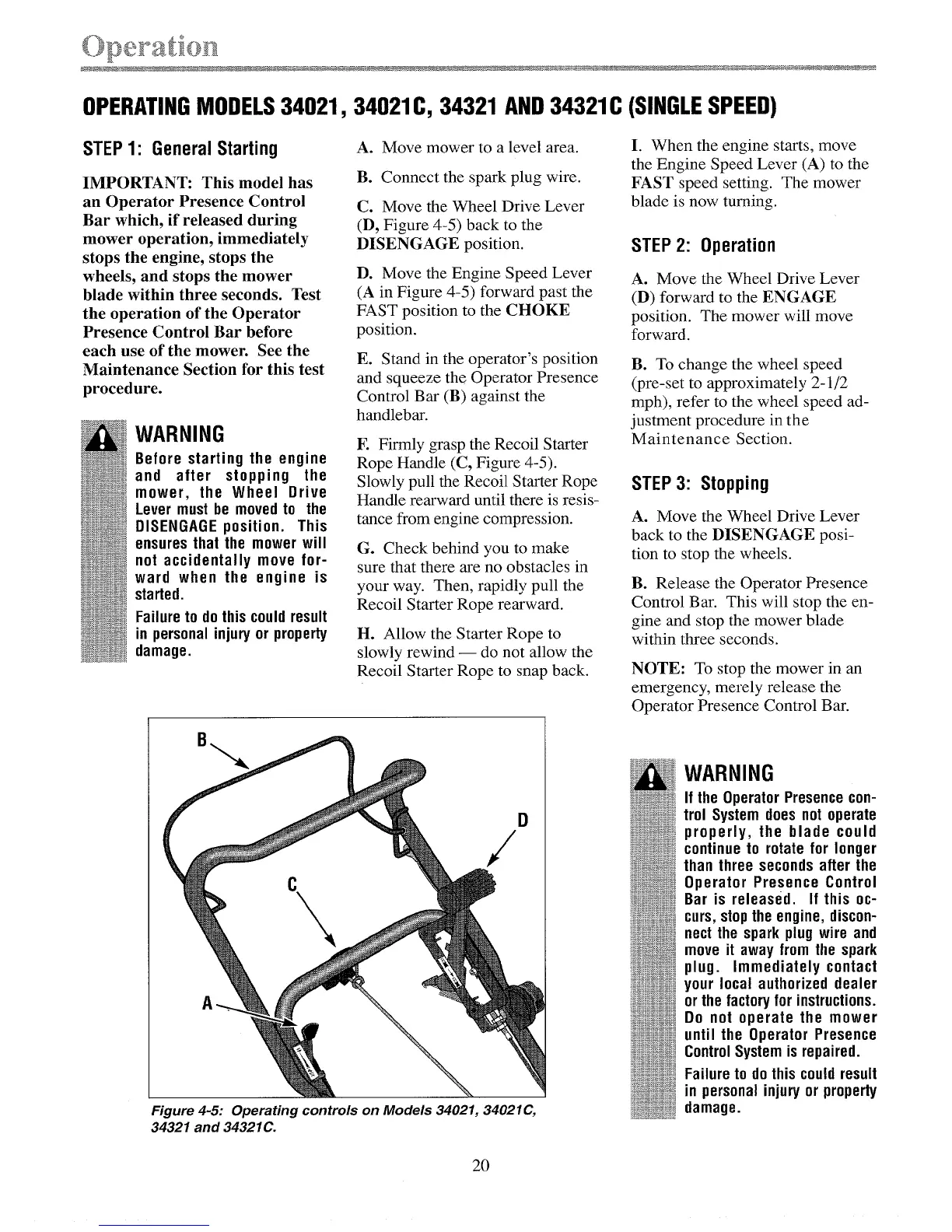 OPERATINGMODELS34021, 34021C, 34321 AND34321C (SINGLESPEED)