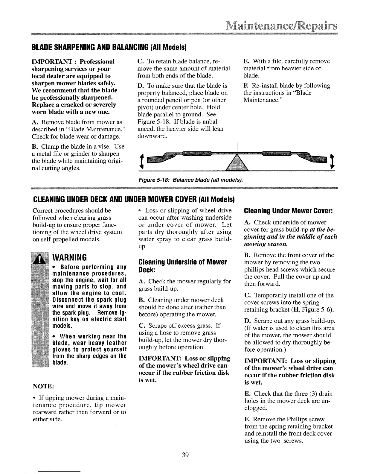CLEANINGUNDERDECKAND UNDERMOWERCOVER(All Models)