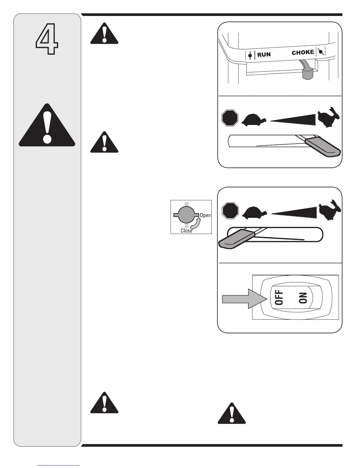 4. Move throttle control lever to FAST (rabbit) position