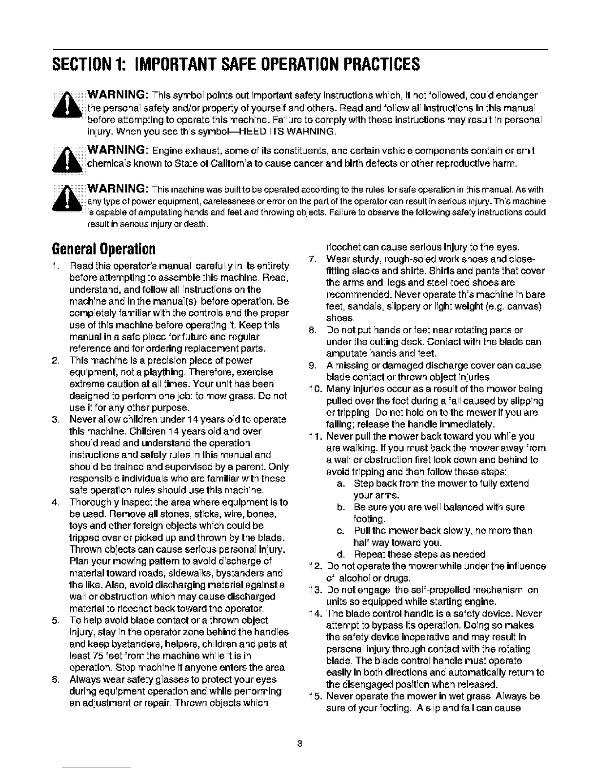 "12. Do not eperate the mower while under the influence
