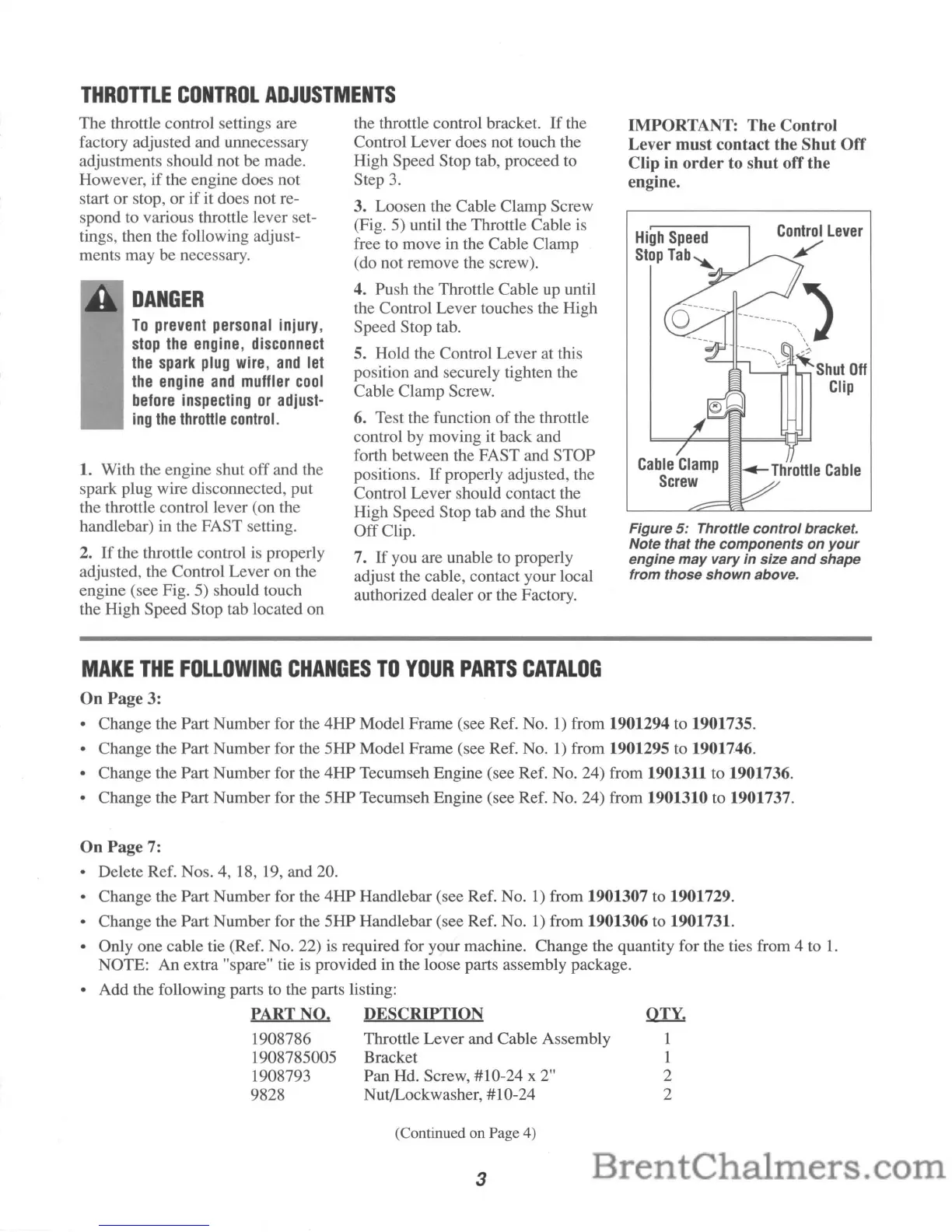 • Change the Part Number for the 5HP Tecumseh Engine (see Ref. No. 24) from 1901310 to 1901737.