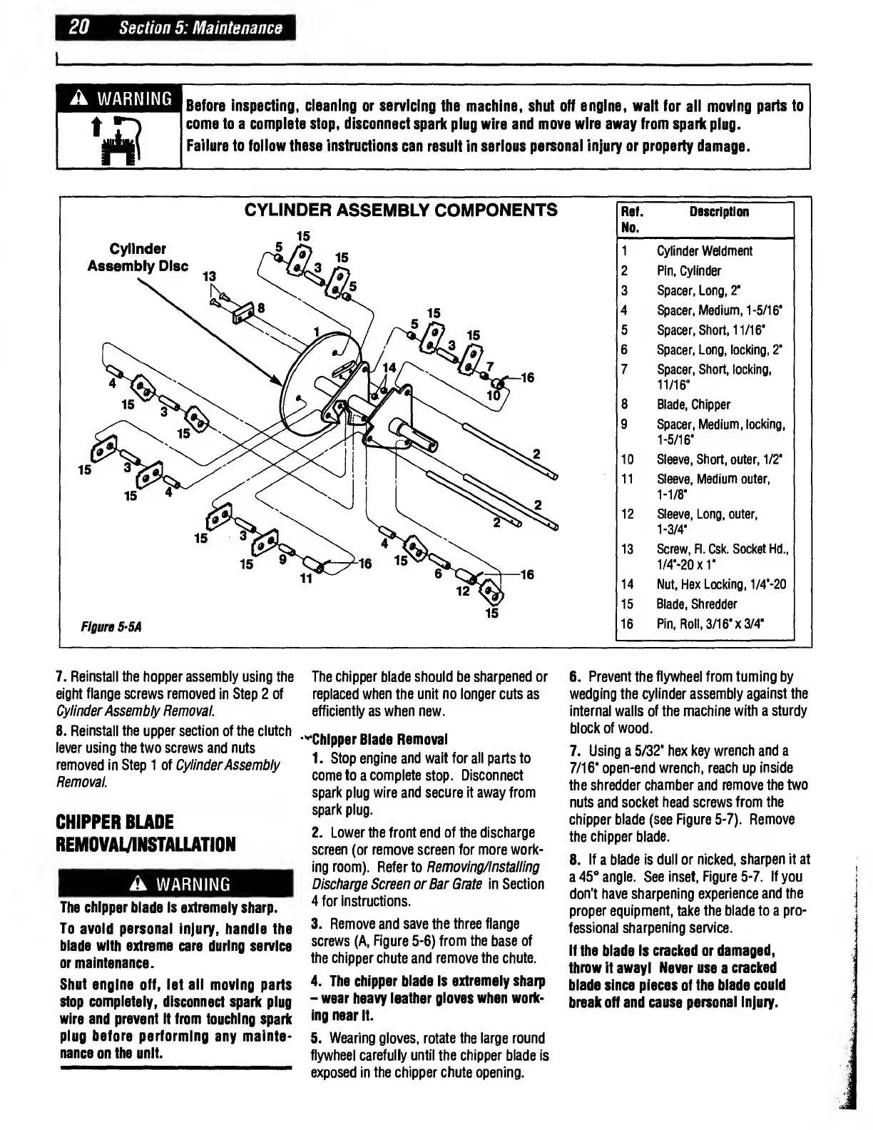 Troy-Bilt 47329 - Maintenance - Chipper Blade; Chipper Blade Removal Procedure; Chipper Blade Care and Replacement