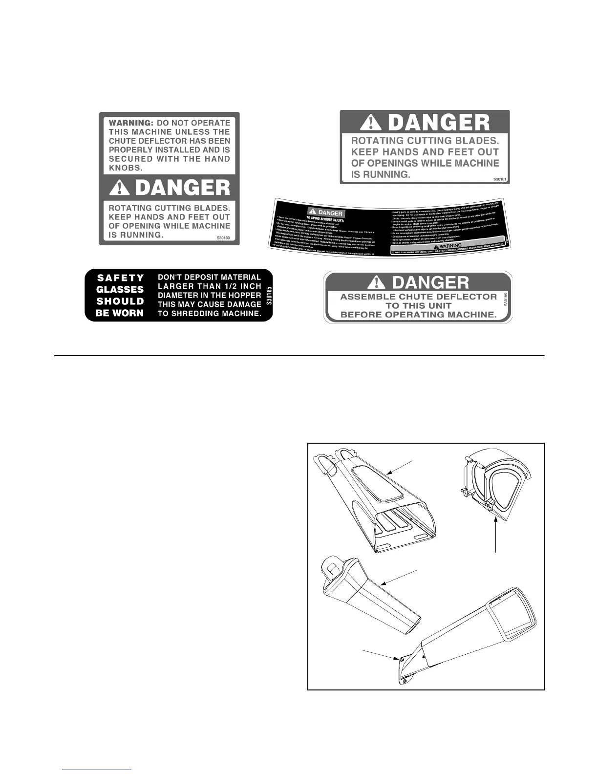 this manual and on the machine. Not all safety labels shown may apply to your chipper shredder.