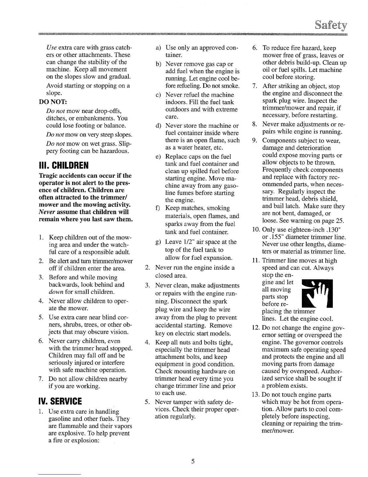 Troy-Bilt 52027 - Children Safety; Service Safety Precautions