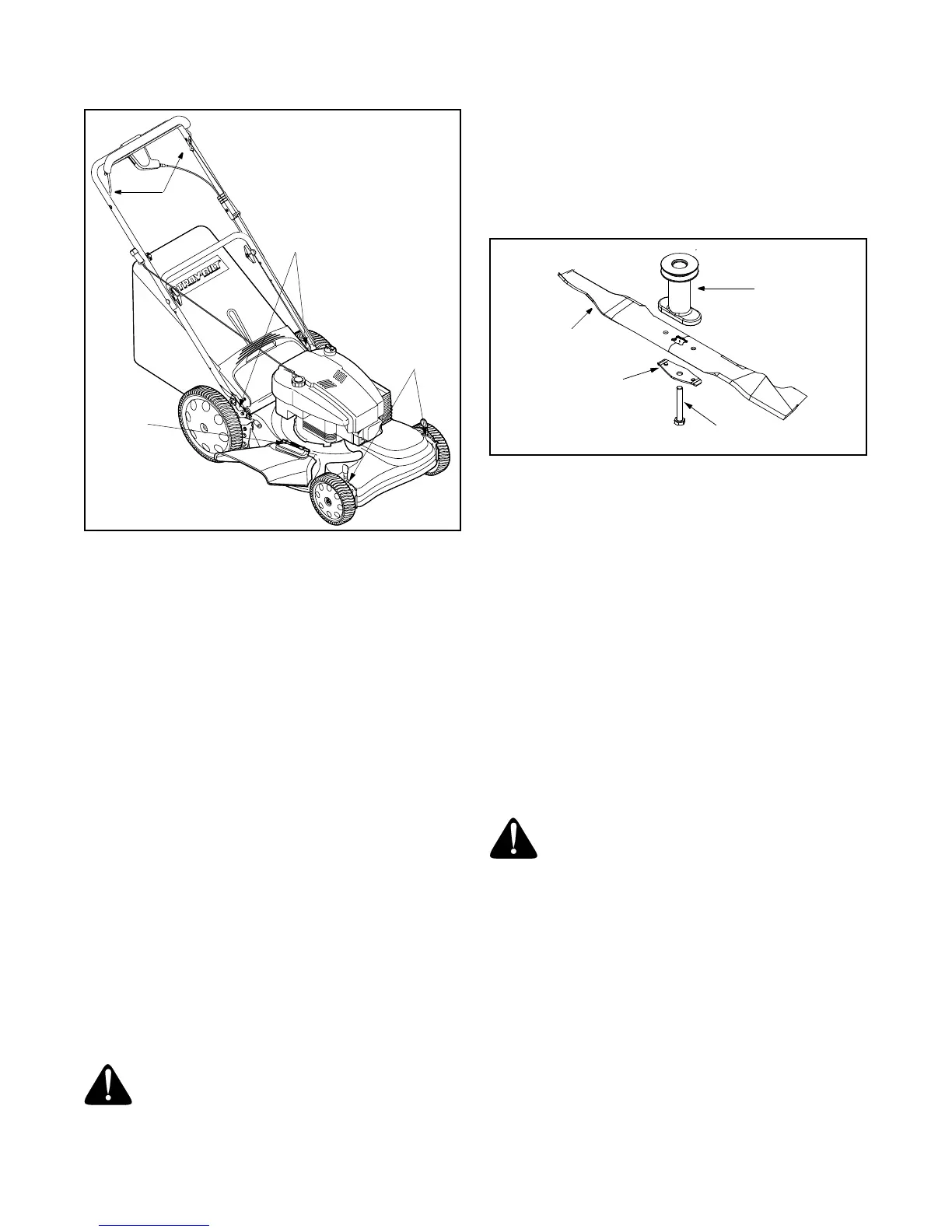 • Install the blade assembly on the crankshaft. Tighten the