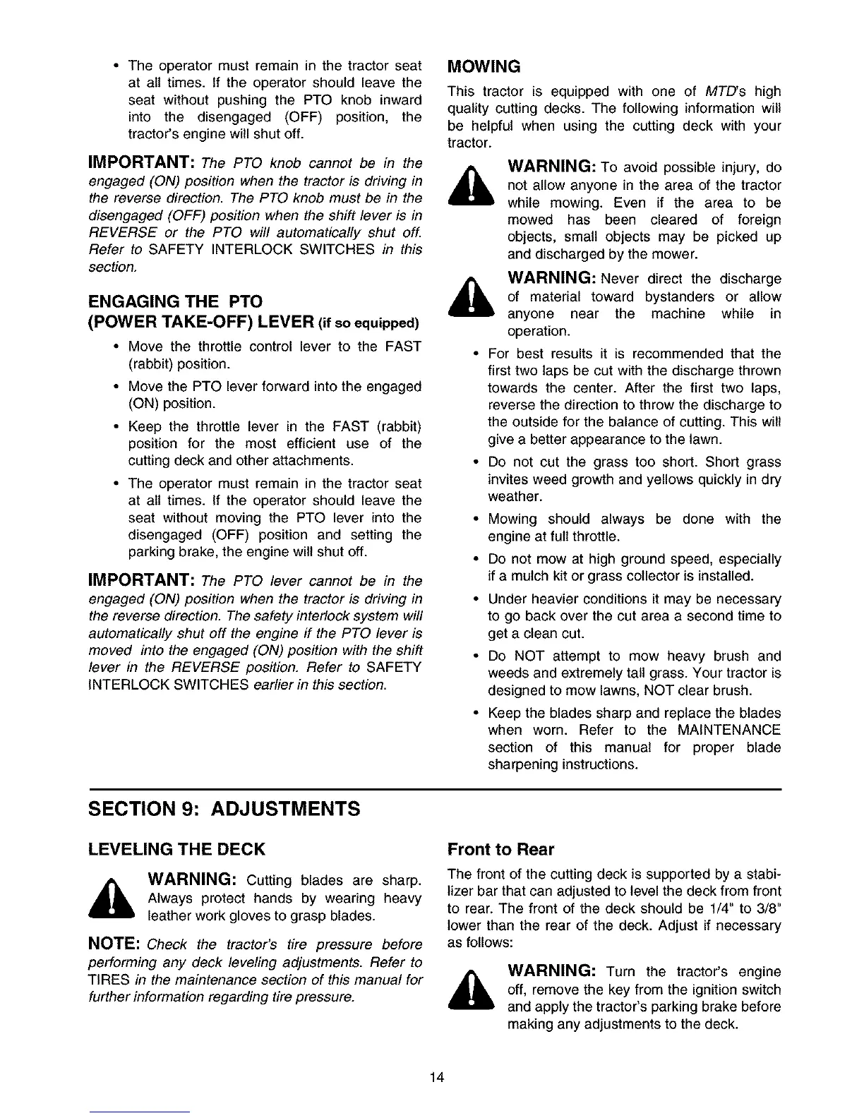 performing any deck leveling adjustments. Refer to