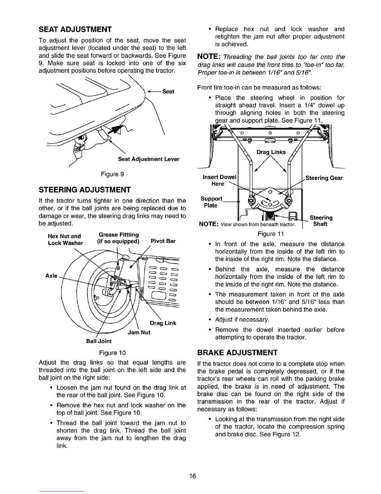 transmission in the rear of the tractor. Adjust if
