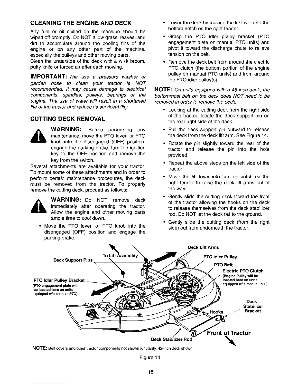 the deck from the deck lift arm. See Figure 14.