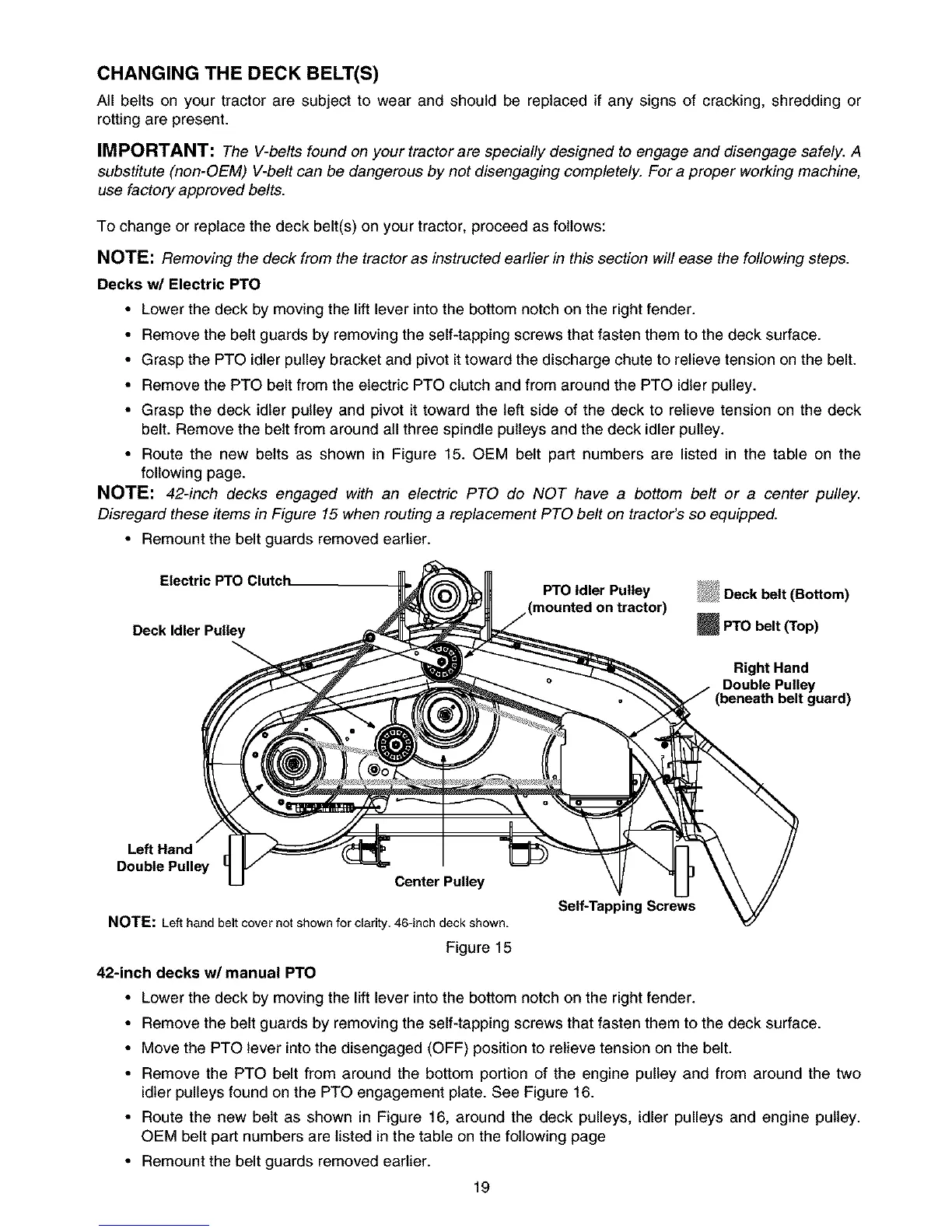 NOTE: Lefthandbeltcovernotshownfor clarity. 46-inchdeckshown.