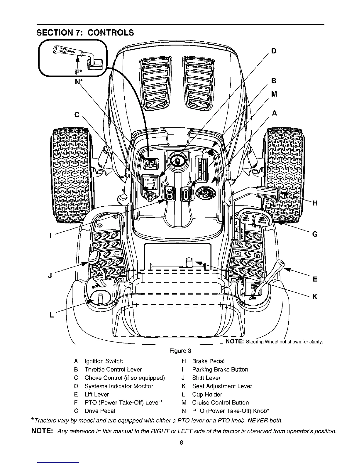NOTE: Any reference in this manual to the RIGHT or LEFT side of the tractor is observed from operator's position.