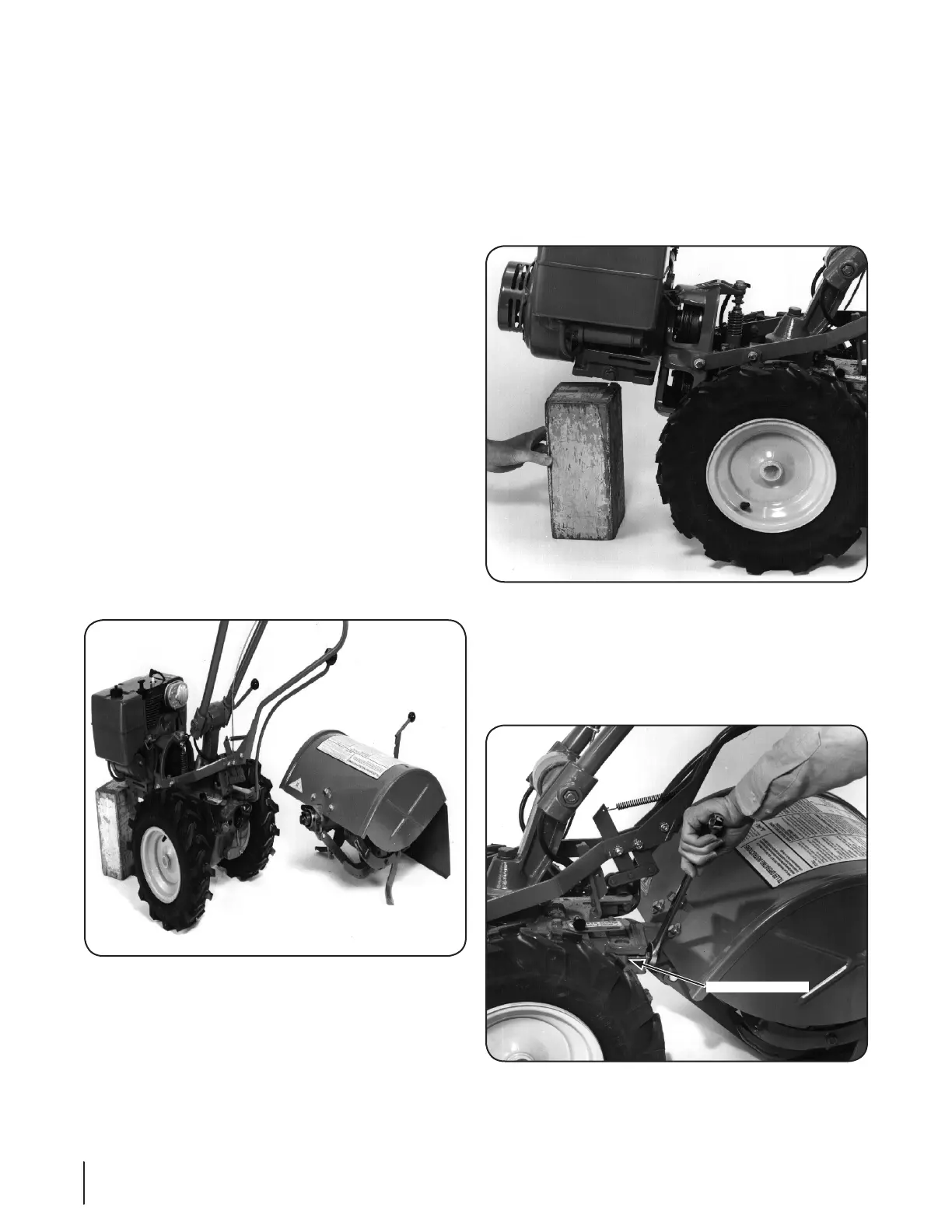 engine from tipping forward when the tine attachment is