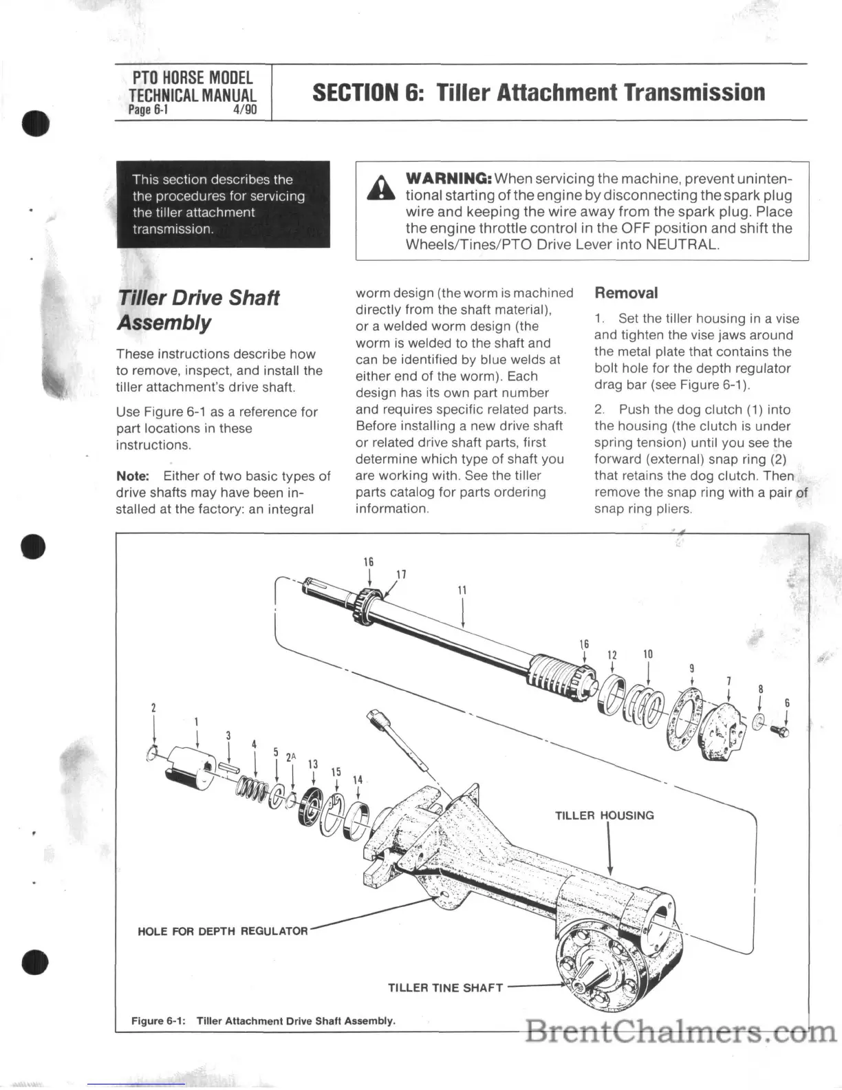 tiller attachment's drive shaft.