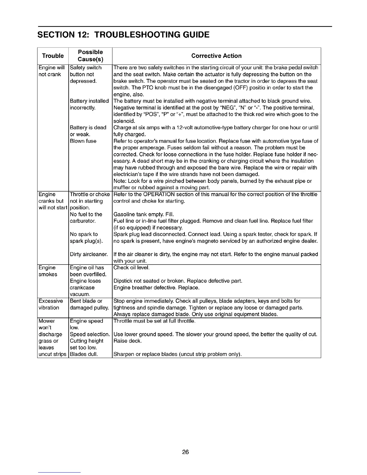 no spark is present, have engine's magneto serviced by an authorized engine dealer.