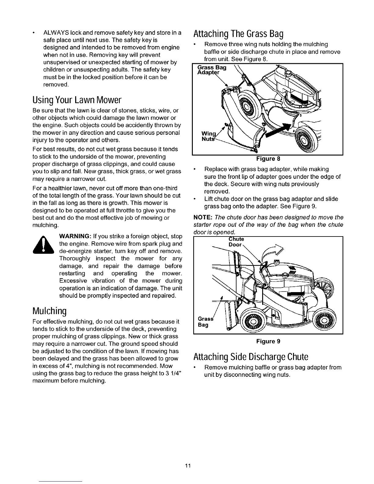 grass bag onto the adapter. See Figure 9.