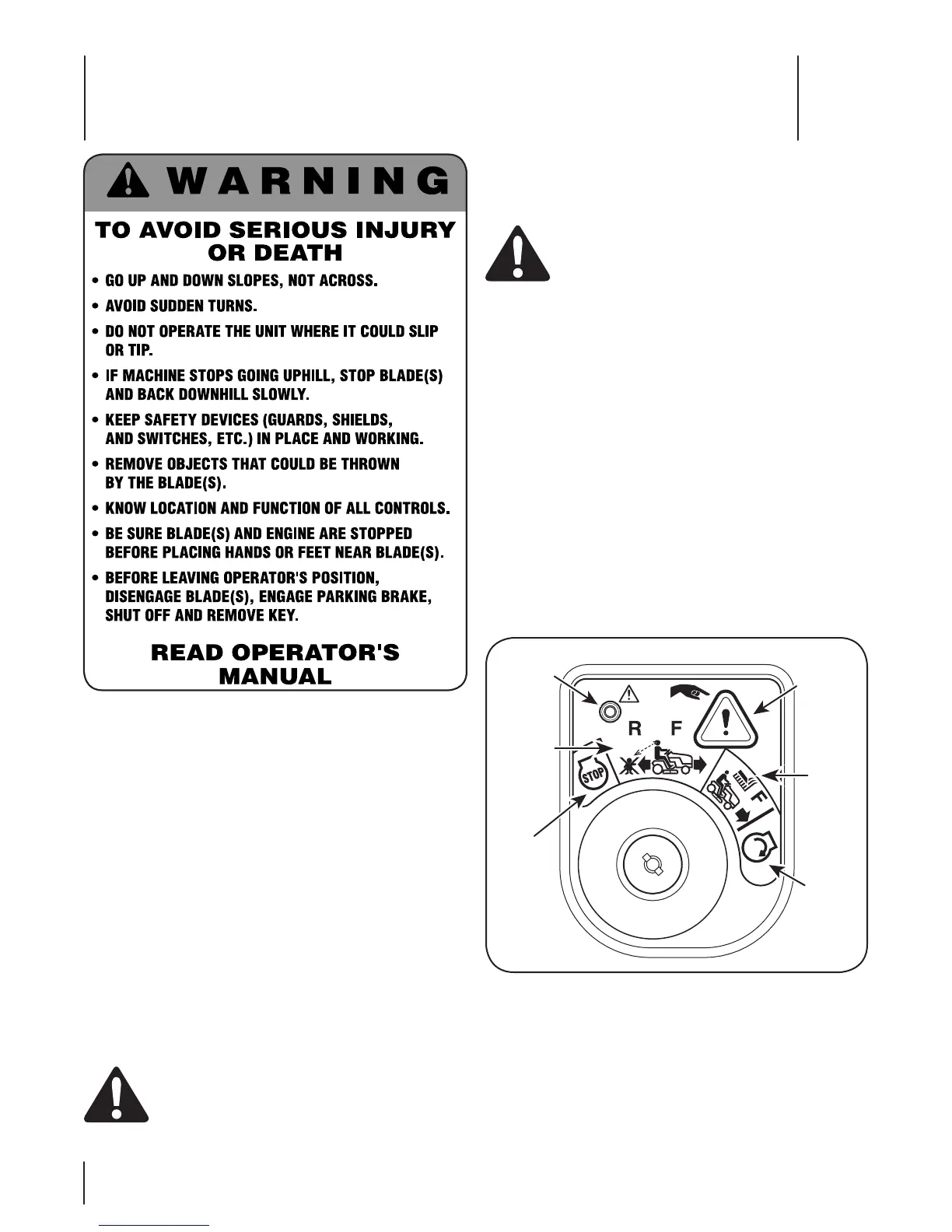 • The engine will automatically shut off if the operator leaves